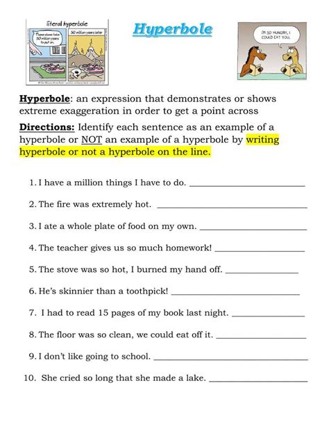 Web This Worksheet Features This Fun Figure Of Speech And Asks Your Student To Tell Which Sentence Has A Hyperbole And Which Does Not.